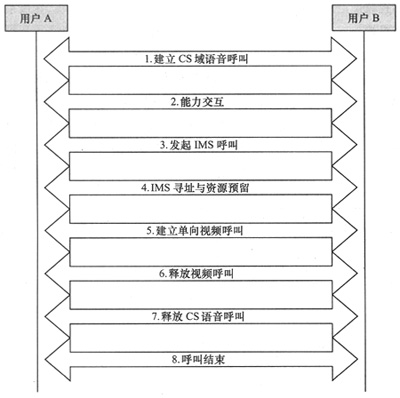 步驟5:建立視頻呼叫。此時(shí)IMS用戶A可向GSM用戶傳送視頻流。不過(guò)視頻流不是直接在兩個(gè)用戶間傳送,視頻流首先傳送到VS業(yè)務(wù)網(wǎng)關(guān),由VS業(yè)務(wù)網(wǎng)關(guān)實(shí)時(shí)轉(zhuǎn)發(fā)給GSM用戶B。