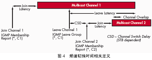 。5)平均頻道離開(kāi)延時(shí):從發(fā)出IGMP leave消息直到接收到該頻道的最后一個(gè)組播包之間的時(shí)間。通常頻道離開(kāi)延時(shí)越短越好。