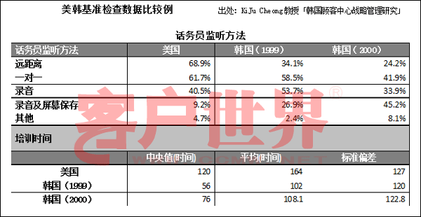上圖是全南大學(xué)教授Ki Ju Cheong調(diào)查比較韓國(guó)和美國(guó)客服中心后的報(bào)告書(shū)的一部分。Ki Ju Cheong教授自稱是因分析客服中心標(biāo)準(zhǔn)指數(shù)聞名于世的美國(guó)Purdue大學(xué)安東博士的學(xué)生。通過(guò)這個(gè)圖表可以簡(jiǎn)單看出韓國(guó)客服中心經(jīng)營(yíng)的改善狀況。
