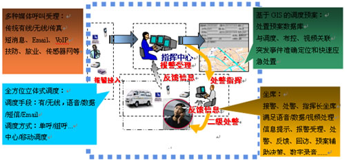 接處警應用系統(tǒng)是應急聯(lián)動中心的核心部分,系統(tǒng)在保證“先進、實用、可靠”的前提下,與全市應急聯(lián)動單位實現(xiàn)互聯(lián)互通、信息共享;把接處警系統(tǒng)與GPS、有無線通信、視頻監(jiān)控、預案指揮等技術(shù)系統(tǒng)有機的結(jié)合在一起,形成“以計算機網(wǎng)絡(luò)為基礎(chǔ),以有線、無線通信為紐帶,以接處警信息傳遞、處理為核心,以資源共享和計算機輔助決策為載體的綜合性系統(tǒng)工程”,從而提高應急聯(lián)動中心的指揮調(diào)度、輔助決策等綜合處置能力,滿足在復雜條件下指揮、調(diào)度、協(xié)調(diào)、處置城市不同種類和等級的突發(fā)事件的實戰(zhàn)需要。