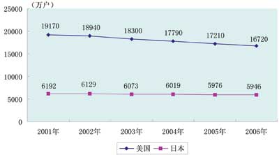 關(guān)于固定電話受沖擊的現(xiàn)象,美國比日本更加突出,這是因為美國大的通信公司除了提供電話、電視和高速上網(wǎng)捆綁服務外,基本上不提供IP電話(普通電話機經(jīng)本地市話交換機以及網(wǎng)關(guān)進入因特網(wǎng))和VoIP電話(普通電話機經(jīng)電話連接器進入因特網(wǎng))。美國衛(wèi)生統(tǒng)計中心公布的數(shù)據(jù)顯示,2007年下半年,美國只有移動電話而沒有固定電話的家庭比例達到15.8%,這一比例在2004年同期只有6.1%,大約2%的美國家庭沒有電話。