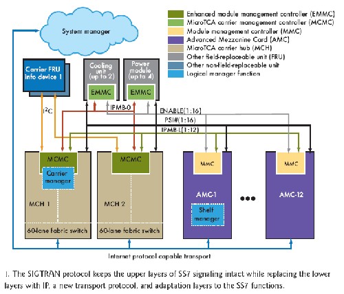 信令網(wǎng)關(guān)用于橋接下一代IP網(wǎng)絡(luò)和傳統(tǒng)的包交換電話網(wǎng)絡(luò)(PSTN),處理的主要是呼叫建立、控制和計費等信號。網(wǎng)關(guān)設(shè)計要求融合IP協(xié)議、傳統(tǒng)的交換電路協(xié)議、操作系統(tǒng)、管理以及高可靠性的硬件系統(tǒng)設(shè)計。MicroTCA、AdvancedMC硬件和現(xiàn)成軟件可以提供構(gòu)建模塊用于開發(fā)獨立的信令網(wǎng)關(guān)設(shè)計,這樣設(shè)計出來的網(wǎng)關(guān)很容易隨著IP電話需求的增加而進(jìn)一步擴(kuò)展。