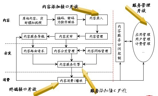 必須實現(xiàn)接口開放,從2004年到現(xiàn)在做了這么長時間,解決機頂盒和系統(tǒng)的標準化問題,全國的機頂盒都是一個接口,F(xiàn)在初步解決了接口開放的問題,增值業(yè)務添加接口可以實現(xiàn)局部的標準化和開放,但是應該說大量的接口還是封閉,如果要走到和行業(yè)深度結(jié)合階段,這個接口要進一步開放,而不是打造成全封閉的系統(tǒng)。