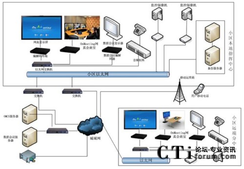 Communication Server)服務(wù)器,實(shí)現(xiàn)OnMeeting網(wǎng)真預(yù)約會議、數(shù)據(jù)協(xié)同以及即時(shí)通信功能,使得網(wǎng)真視頻會議與社區(qū)管理中原有辦公和監(jiān)控系統(tǒng)有機(jī)的融合,提供了高清晰、高效率、1:1真人大小圖像的視頻通信,使得社區(qū)安防會商實(shí)現(xiàn)了更有效的溝通。