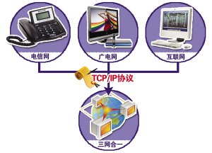 所謂三網(wǎng)融合,就是在同一個(gè)網(wǎng)上實(shí)現(xiàn)語音、數(shù)據(jù)和圖像的傳輸。對(duì)用戶而言,就是指只用一條線路可以實(shí)現(xiàn)打電話、看電視、上網(wǎng)等多種功能。