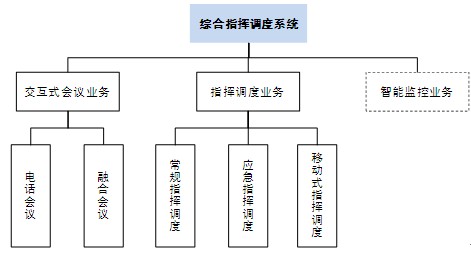 基于融合通信平臺(tái)的綜合指揮調(diào)度系統(tǒng)可分為交互式會(huì)議業(yè)務(wù)、指揮調(diào)度業(yè)務(wù)和智能監(jiān)控業(yè)務(wù),而交互式會(huì)議業(yè)務(wù)分為電話會(huì)議和在電話會(huì)議基礎(chǔ)上升級(jí)的融合會(huì)議產(chǎn)品兩種,指揮調(diào)度業(yè)務(wù)分常規(guī)指揮調(diào)度、應(yīng)急指揮調(diào)度和移動(dòng)式指揮調(diào)度三種。