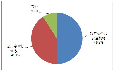 從細(xì)分市場來看,政府及公共安全機(jī)構(gòu)為最大的細(xì)分市場,占總市場規(guī)模的49.8%,而且比重仍有上升趨勢(shì),公用事業(yè)行業(yè)客戶市場占比41.1%,其他客戶占9.1%。