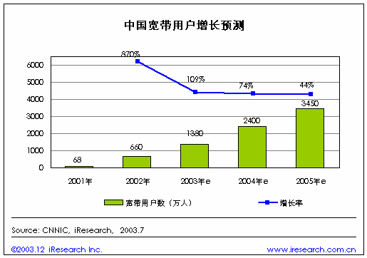 中國寬帶用戶增長將達(dá)到1380萬(圖)