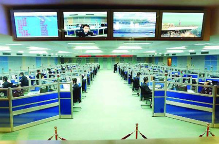 指揮長(zhǎng)室:透過玻璃屏幕可監(jiān)視大廳