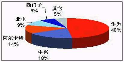 2004年中國大陸NGN設備市場投資額(億元人民幣)