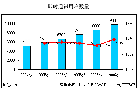 2006第一季度中國即時通訊用戶數接近1億