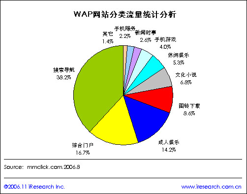 iResearch:WAP網(wǎng)站分類流量統(tǒng)計分析