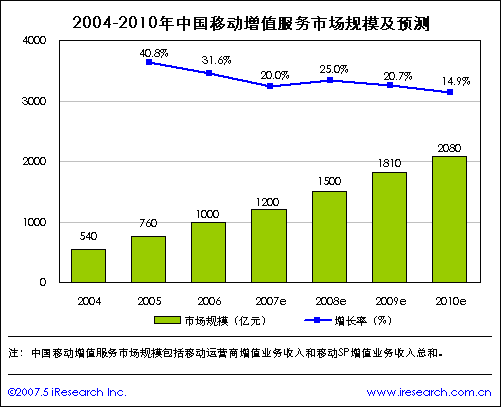 移動(dòng)增值市場空間大 08年規(guī)模將達(dá)1500億