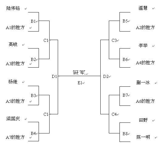 比賽雙方 | 蒯一冰(上海怡樂有限公司)vs A6的勝方 |
