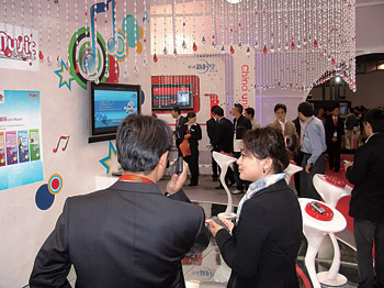 在本屆通信展上,中國聯(lián)通掌上股市、紅草莓、手機導航等新業(yè)務(wù)精彩亮相,許多觀眾對掌上股市業(yè)務(wù)表現(xiàn)出了極大的興趣。而中國移動也展示了面向2008年北京奧運會的移動票務(wù)、BlackBerry等移動商務(wù)應(yīng)用,吸引了觀眾的眼球。