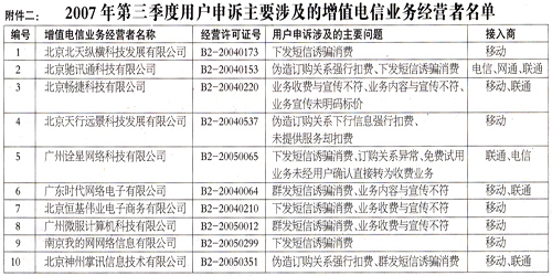 | 增值電信業(yè)務經(jīng)營許可證年檢“不合格”企業(yè)名單公布 2007-10-26 |