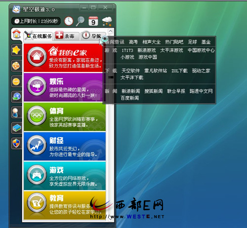 中國電信終于也出IM軟件了,中移動除了飛信、聯通出了超信、網通出了靈信,現在電信這個叫什么?還是星空極速?最新版本看來似乎叫做“星空極速3.0”,據說最近一直在廣東電信推出的寬樂通信就是電信IM的雛形,開始在深圳東莞等地上線。據說新版的星空極速3.0就已經做到了IM的功能,而且還支持VoIP!西部E網