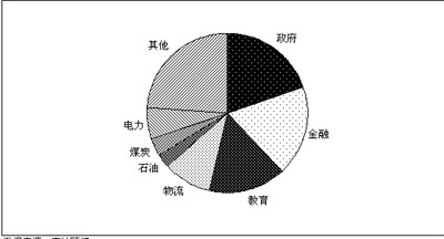 圖2 2008年上半年中國行業(yè)電信應(yīng)用市場行業(yè)分布情況