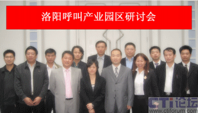2008年10月23日,洛陽(yáng)呼叫中心產(chǎn)業(yè)園區(qū)研討會(huì)在洛陽(yáng)隆重舉行。此次會(huì)議由洛陽(yáng)市政府主辦,由洛陽(yáng)市經(jīng)濟(jì)開(kāi)發(fā)區(qū)承辦,為期一天。會(huì)議由洛陽(yáng)市經(jīng)濟(jì)開(kāi)發(fā)區(qū)管委會(huì)主任助理葛干杰主持,洛陽(yáng)經(jīng)濟(jì)開(kāi)發(fā)區(qū)招商二局局長(zhǎng)李國(guó)慶向與會(huì)專家介紹了洛陽(yáng)呼叫中心產(chǎn)業(yè)園區(qū)的發(fā)展?fàn)顩r,洛陽(yáng)市人民政府副市長(zhǎng)楊萍女士出席會(huì)議并作重要講話。CTI論壇編輯