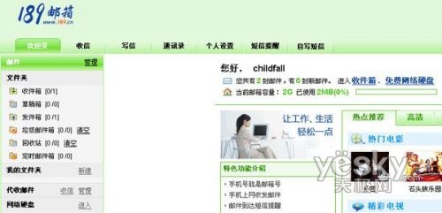 從整體感官上給人的感覺139郵箱要略勝一籌,默認的商務風格比較簡練穩(wěn)重很是大氣。而189郵箱默認的歡迎頁面則比較幼稚一點,而且歡迎頁面的相關推薦使得郵箱首頁整體布局較為花哨凌亂。