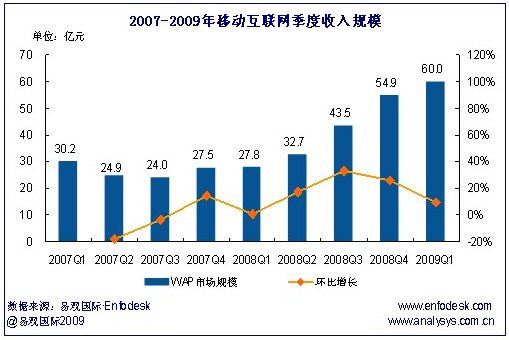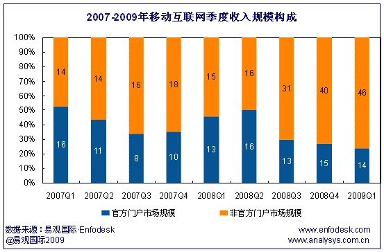2009首季中國移動(dòng)互聯(lián)網(wǎng)收入達(dá)60億 運(yùn)營商官方門戶有望快速增長