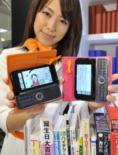 日本第二大電信服務商KDDI與東芝合作推出以“Biblio”命名的手機,以電子書瀏覽器作為最大賣點。該機內建7GB內存,3.5吋觸摸式液晶顯示屏,外型及包裝設計都和Amazon Kindle相似,配備WIFI、510萬像素鏡頭及電子辭典功能。