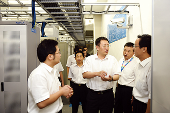 河南洛陽(yáng)市12580家庭服務(wù)呼叫中心經(jīng)過(guò)一段時(shí)間的試運(yùn)行,目前已有200多家家庭服務(wù)業(yè)公司加入該呼叫中心,實(shí)現(xiàn)了保姆、月嫂、保潔、開(kāi)鎖、家教、婚慶、送鮮花、快遞、送餐和鐘點(diǎn)工等十幾項(xiàng)服務(wù),并將逐步擴(kuò)大到50多項(xiàng)服務(wù)。圖為洛陽(yáng)市副市長(zhǎng)高頌革(右三)在洛陽(yáng)移動(dòng)公司視察指導(dǎo)工作。人民郵電報(bào)
