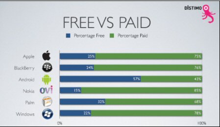 Mobile的應用平均售價也較高,為6.99美元,諾基亞Ovi為3.47美元,Palm僅為2.53美元。