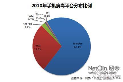 圖:2010年手機病毒平臺分布比例