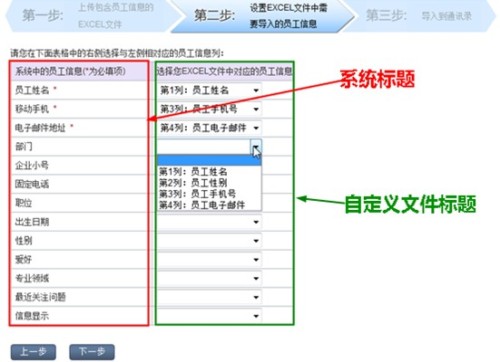 注意:根據(jù)申請時配置的員工額度上傳自定義通訊錄excel文件;