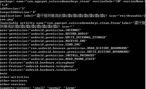 Jacky舉例,安智網(wǎng)的一款應(yīng)用軟件名為屏幕水珠,在2010年7月份聯(lián)系原作者進行的漢化,由于效果不錯,一些廠商進行修改后,在代碼中加了收取和發(fā)送短信以及讀取和寫入書簽的權(quán)限。