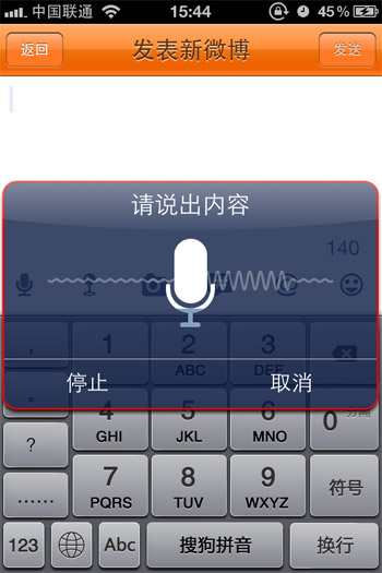 另外,在“發(fā)表新微博”輸入框底部,有明顯的語音輸入按鈕、位置定位等圖標(biāo),用戶點擊錄制微博,完畢后系統(tǒng)將會進行識別計算,最后以文字形式呈現(xiàn)在輸入框中。據(jù)悉,此種方式采用了科大訊飛語音輸入技術(shù),但經(jīng)實際試用發(fā)現(xiàn),目前測試版本還還存在一定問題,對方言、同音字、語音速度、使用環(huán)境影響比較大,實際使用起來識別的效率并不高。