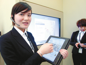 花旗銀行有關(guān)人士表示,客戶(hù)在投資理財(cái)?shù)倪^(guò)程中,可以通過(guò)視頻電話(huà)與遠(yuǎn)在上海的花旗理財(cái)顧問(wèn)“面對(duì)面”溝通。在可以打視頻電話(huà)的房間,重慶晚報(bào)記者坐在視頻電話(huà)前面,聯(lián)系外地的理財(cái)顧問(wèn)以后,屏幕上出現(xiàn)清晰圖像———遠(yuǎn)方的理財(cái)顧問(wèn)、辦公室環(huán)境等清晰地出現(xiàn),雙方交流起來(lái)就像是“面對(duì)面”談話(huà)。
