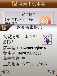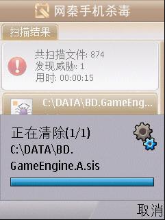 此外,在分析過程中專家還發(fā)現,這款手機病毒聯(lián)網下載的“gameEngine.sis_7”惡意插件存在 “自我保護”機制,一旦被下載到手機中將影響其它第三方手機安全軟件的正常安裝。
