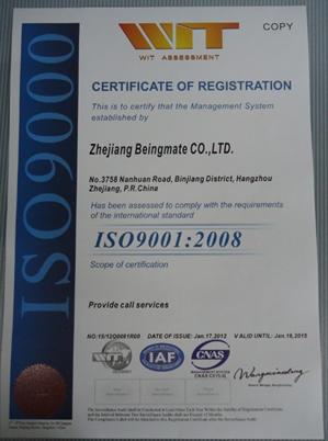 浙江貝因美科工貿(mào)股份有限公司呼叫中心于2012年1月17日通過(guò)ISO9001:2008質(zhì)量管理體系認(rèn)證,并獲得中國(guó)CNAS和美國(guó)ANAB認(rèn)可的證書。這標(biāo)志著,貝因美呼叫中心成為國(guó)內(nèi)嬰童業(yè)界少數(shù)通過(guò)ISO9001國(guó)際質(zhì)量管理體系的審核、并獲得ISO9001:2008質(zhì)量管理體系認(rèn)證證書的客戶服務(wù)中心之一。