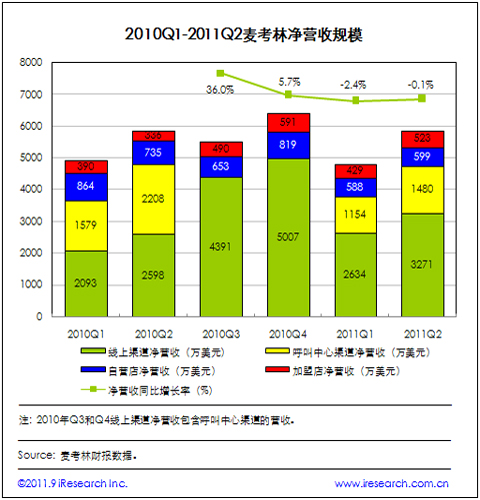 麥考林業(yè)務(wù)調(diào)整 2011Q2線(xiàn)上渠道凈營(yíng)收同比增長(zhǎng)25.9%
