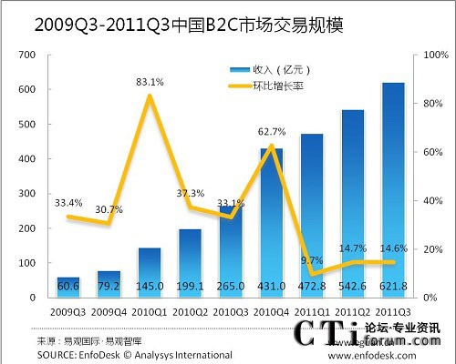 易觀(guān)智庫(kù):2011年第3季度中國(guó)B2C整體市場(chǎng)增長(zhǎng)乏力