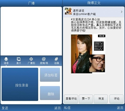 語(yǔ)音微博1.6 for Symbian新加入的私信和經(jīng)驗(yàn)系統(tǒng)的加入使得用戶間信息的交流更緊密、分享更便捷。從此,千里傳音不是夢(mèng)。