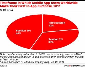 移動應用分析公司Localytics提供的數(shù)據(jù)顯示,增加應用粘性對用戶重復訪問應用以及經(jīng)常性參與應用內(nèi)置支付非常重要。舉例而言,連續(xù)數(shù)天玩一款手機游戲的玩家,比不經(jīng)常玩這款游戲的玩家更可能購買游戲附加的內(nèi)容或功能。Localytics的研究結(jié)果表明,忠實的應用用戶比平均用戶使用應用內(nèi)置支付高出25%。Localytics的數(shù)據(jù)還表明,44%的智能手機用戶只有與應用互動10次以上,才會使用應用內(nèi)置支付。該調(diào)查還顯示,在應用發(fā)布12天開始,便會有用戶使用應用內(nèi)置支付。