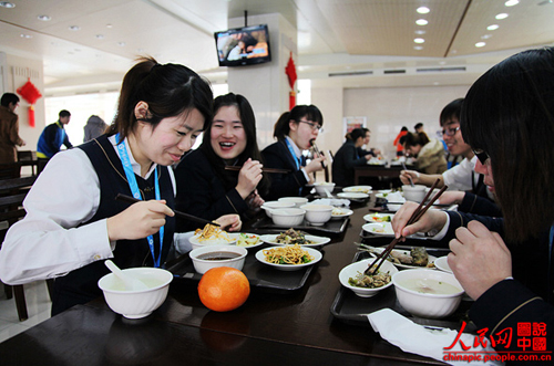 10點40分,是青青的吃飯時間。作為小組長,她會叫上自己的五個組員一起去吃飯。