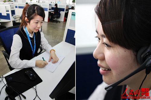 沈青青,今年24歲,湖州人,擔任浙江移動10086接線員已經(jīng)兩年了,是2011年下半年度杭州濱江中心的服務(wù)明星。她每天要接聽至少200-300個電話,每次她總能以甜美的聲音為顧客解決一個又一個的問題。