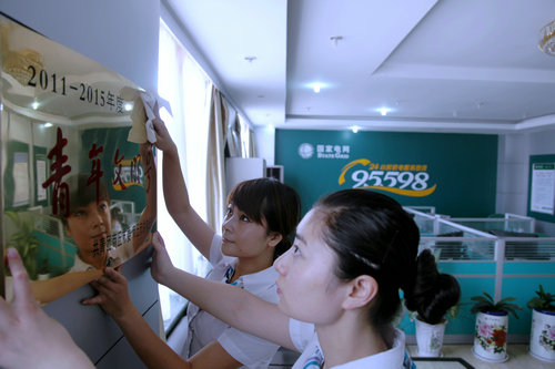6月15日,從虞城供電公司團(tuán)委獲悉,該公司“95598”電力客戶服務(wù)中心榮獲共青團(tuán)商丘市委頒發(fā)的2011至2015年度青年文明號(hào)榮譽(yù)稱號(hào),這是繼該中心獲得市級(jí)“黨員先鋒崗”后的又一榮譽(yù)。圖為:6 月15日清晨,虞城供電公司95598兩名座席人員在班前對(duì)榮譽(yù)匾牌進(jìn)行細(xì)心的呵護(hù)。