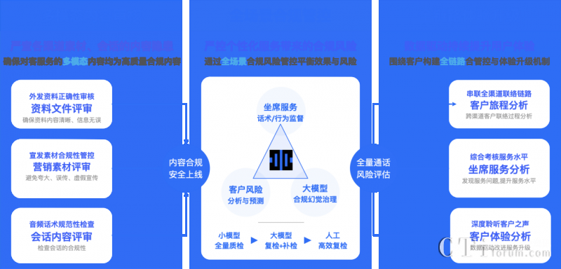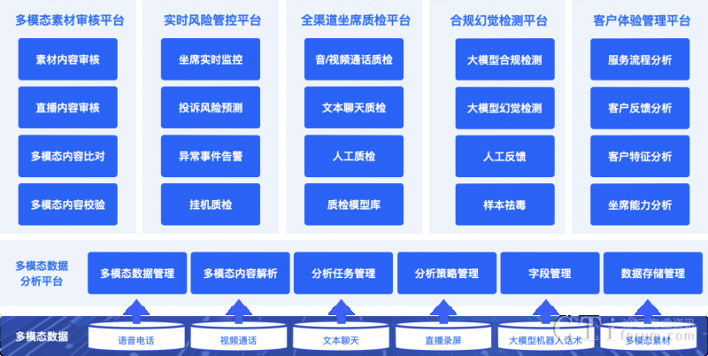 依托多項(xiàng)AI能力融合應(yīng)用,升級(jí)后的【多模態(tài)合規(guī)分析平臺(tái)】能處理對(duì)話數(shù)據(jù)、圖片、音頻和視頻等各種格式的信息,同時(shí)采用大小模型組合式AI合規(guī)檢查機(jī)制,對(duì)各個(gè)渠道的客戶互動(dòng)數(shù)據(jù)進(jìn)行聚合分析,實(shí)現(xiàn)大模型構(gòu)成坐席和客戶間全場景多模態(tài)數(shù)據(jù)檢測(cè)與分析,以及客戶體驗(yàn)升級(jí)。