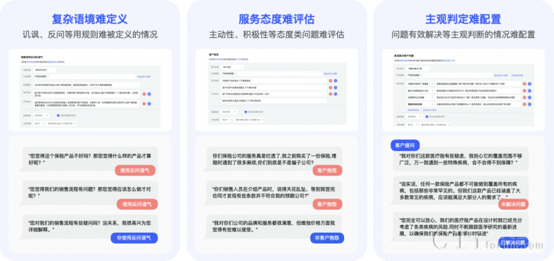 解決了傳統(tǒng)基于關(guān)鍵詞或NLP配置規(guī)則難以窮舉所有違規(guī)內(nèi)容,導(dǎo)致檢測(cè)遺漏的難題,智能質(zhì)檢的配置過程也更為簡便,只需簡單的描述輸入即可完成配置,大大降低了操作難度和成本。相較于人工質(zhì)檢,效率提升幅度超過1000倍。