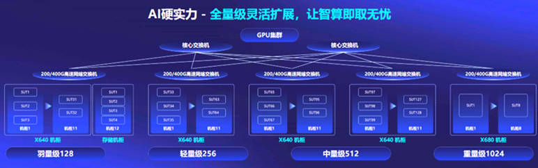 隨著算力成為稀缺資源,寧暢從客戶角度出發(fā),提供了“先享后付”的算力購買方案。目前,寧暢AI算力棧已開放免費試用,現(xiàn)已有50+用戶預(yù)約試用。該算力棧是一個包括128臺GPU服務(wù)器的千卡級別算力集群,標準化智算中心建設(shè)方案囊括了羽量級128、輕量級256、中量級512、重量級1024四個等級,實現(xiàn)全量級靈活擴展,給了用戶極大選擇空間。用戶可在試用中嘗試不同的業(yè)務(wù)組合、方案框架,以便找到“最優(yōu)性價比”的智算中心建設(shè)方案。