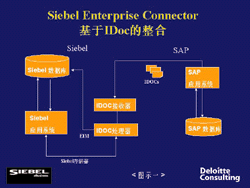 如果在CRM設(shè)計(jì)中就充分考慮到了哪些數(shù)據(jù)需要不斷和ERP進(jìn)行同步更新,上述麻煩就會大大減少。這也是為什么像Siebel這樣的行業(yè)領(lǐng)先的前端辦公軟件開始提供與SAPR/33.1以上版本的ERP進(jìn)行完全兼容的中間軟件(middle ware)。