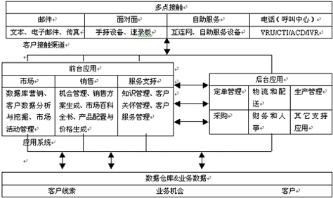 從源頭上把握最便捷的方法就是了解概念,即什么是CRM。世界著名IT系統(tǒng)項(xiàng)目論證與決策權(quán)威機(jī)構(gòu)—Gartner Group(注:Gartner Group在全球率先提出了CRM的概念)認(rèn)為CRM是迄今為止規(guī)模最大的IT概念,但CRM并非等同于單純的信息技術(shù)或管理技術(shù)。它是一種企業(yè)商務(wù)戰(zhàn)略,目的是使企業(yè)根據(jù)客戶分段進(jìn)行重組,強(qiáng)化使客戶滿意的行為并聯(lián)接客戶與供應(yīng)商之間的過程,從而優(yōu)化企業(yè)的可盈利性,提高利潤并改善客戶的滿意程度。具體操作時(shí),它將看待“客戶”的視角從獨(dú)立分散的各個(gè)部門提升到了企業(yè)層次,各個(gè)部門負(fù)責(zé)與客戶的具體交互,但向客戶負(fù)責(zé)的卻是整個(gè)企業(yè)。以一個(gè)面孔面對客戶,是成功實(shí)施CRM的根本。為了實(shí)現(xiàn)CRM,企業(yè)與客戶連接的每一環(huán)節(jié)都應(yīng)實(shí)現(xiàn)自動化管理。那么企業(yè)與客戶連接的環(huán)節(jié)究竟包括些什么內(nèi)容,Gartner Group進(jìn)一步提出了周而復(fù)始的五領(lǐng)域概念:戰(zhàn)略、戰(zhàn)術(shù)、業(yè)務(wù)過程、技能和技術(shù)。戰(zhàn)略集中體現(xiàn)了企業(yè)的經(jīng)營目標(biāo)和理念,還往往滲透于企業(yè)的文化。如CRM強(qiáng)調(diào)以客戶為中心對企業(yè)來說就是一種戰(zhàn)略性選擇;戰(zhàn)術(shù)是戰(zhàn)略的承載體,構(gòu)成戰(zhàn)略的日常要素必須體現(xiàn)和服務(wù)于企業(yè)的整體戰(zhàn)略。如以客戶為中心企業(yè)組織結(jié)構(gòu)的重組就是企業(yè)戰(zhàn)略在戰(zhàn)術(shù)環(huán)節(jié)的反映;CRM的業(yè)務(wù)過程包括銷售管理、市場管理、分析管理、交貨與后臺處理自動化(如ERP)和服務(wù)管理幾個(gè)方面,即Gartner所宣稱的營銷自動化的概念。在此需要強(qiáng)調(diào)的是CRM的業(yè)務(wù)過程的重組也必須體現(xiàn)企業(yè)理念重組和組織重組的價(jià)值取向;后兩項(xiàng)技能和技術(shù)則構(gòu)成了實(shí)現(xiàn)前三者的堅(jiān)強(qiáng)支撐,是各環(huán)節(jié)實(shí)現(xiàn)自動化管理的可靠保證和重要組成部分。