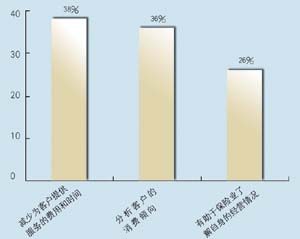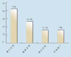 關(guān)于所應(yīng)用的CRM類型,有5家是呼叫中心,5家是分析型,7家是運營型,2家是屬于大型企業(yè)CRM。其中13家擁有動態(tài)客戶數(shù)據(jù)庫,占到68.4%。這其中又有42%利用數(shù)據(jù)庫作客戶記錄,26.3%作為客戶支持使用,15.7%用作統(tǒng)計分析,另有16%作為市場推廣。保險公司與客戶聯(lián)系的方式,從重要性來看依次為:面對面\電話\網(wǎng)絡(luò)\傳真,這說明保險公司對于與客戶進行人性化交流的重視。在問到CRM的主要作用時,有5家表示使用CRM有助于保險業(yè)了解自身的經(jīng)營情況,幫助公司準(zhǔn)確地發(fā)現(xiàn)贏利客戶和具有贏利潛力的客戶,有7家認(rèn)為使用CRM有助于分析客戶的消費傾向,有7家認(rèn)為使用CRM有助于優(yōu)化信息和資源管理。在問到是否愿意為像CRM系統(tǒng)這樣的咨詢或服務(wù)付費時,有11家表示愿意,占到57.8%。