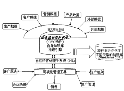 使用CYC技術(shù)中出眾的數(shù)據(jù)庫整合技術(shù),針對企業(yè)不同來源、不同格式的數(shù)據(jù),包括數(shù)據(jù)庫表單、電子表單、文本、圖形等,建立統(tǒng)一的動(dòng)態(tài)知識庫,支持實(shí)時(shí)填充和更新,支持進(jìn)一步的知識處理和企業(yè)決策。