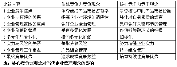 (2)核心競(jìng)爭(zhēng)力觀念對(duì)當(dāng)代企業(yè)管理理念的影響